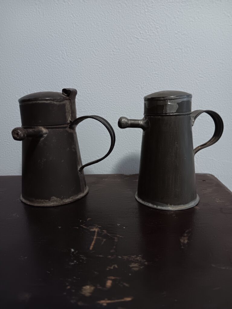 Archaeologists from University of Michigan found an item like this at the Marsh site in East Bloomfield, New York dated between 1650 and 1670. They first speculated it was a vessel for sprinkling holy water and the other option was a feeding bottle. In the 17th century they were made of pewter and they evolved into tin in the 18th century. Meanwhile, the name evolved even more. In 1804 it was a sucking bottle made by Jacob Eicholtz at a cost of 1 shilling and 3 pence according to his daybook. In 1838 it was the first item of tin made by John Burkhart when he started his apprenticeship for George Kersher in Friedensburg Oley Township, PA. He called it a “mam” as it served as a foster mother. Mam may have been a Pennsylvania centric name and it was also called a nursing can. Mammaly is a seldom used version of the name and was spelled mamalee in the book To Cut. Piece. and Solder which is on Pennsylvania tinware. A “nursing can” was a term used at the end of the 19th century, In 2012 one was shown on Antiques Roadshow and called it a tin baby nurser https://share.google/RbvGvbcXDJzZCiXq6